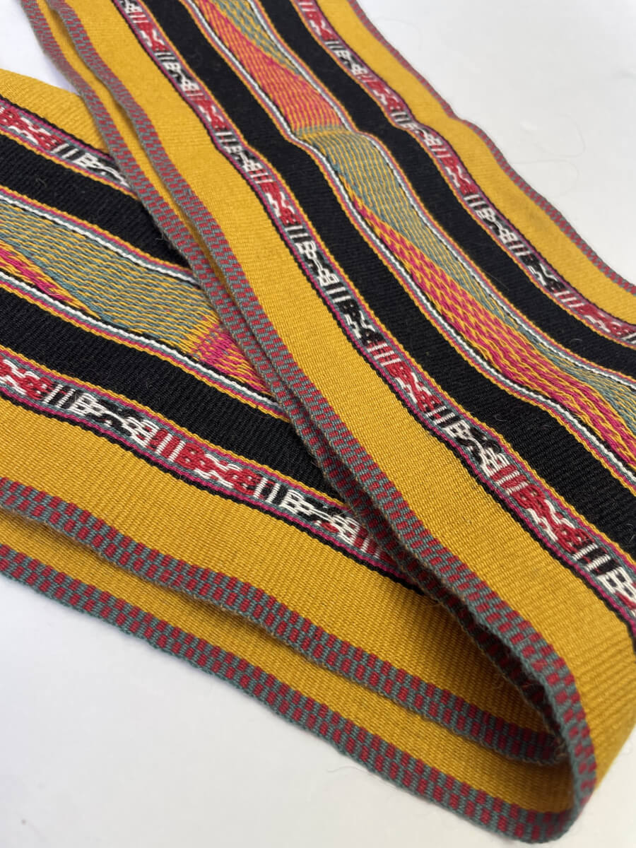 We see the art and tradition of weaving as sacred, and celebrate the fact that everyone participates in keeping this knowledge alive. Your purchase helps the continuation of the craft. 64 x 6.75 inches plus fringe. 163 x 16.5 cm.